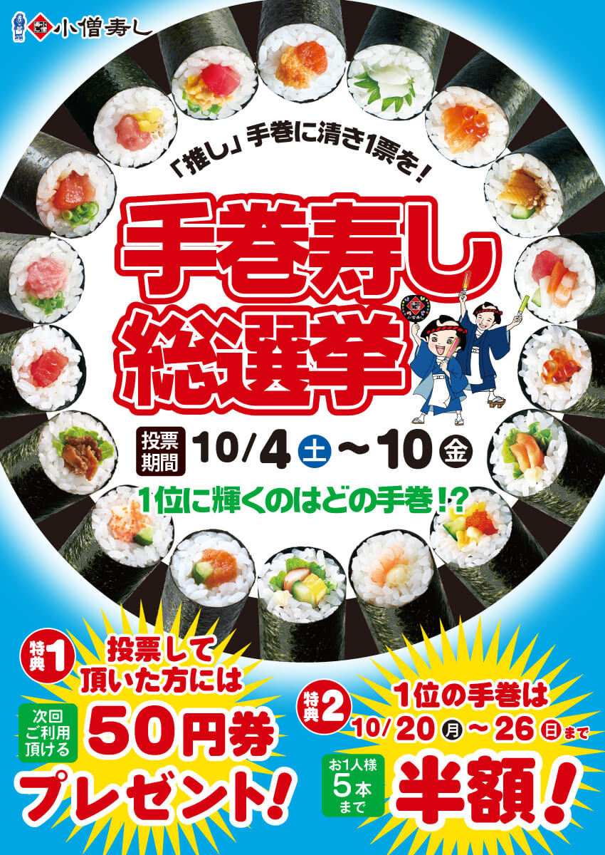 小僧寿し、10月4日から「手巻寿し総選挙〝推し手巻〟グランプリ」