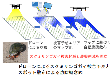 今回、農研機構が開発した技術では、スポット散布することから、圃場全面の半分まで薬剤コストを抑えられるという。
