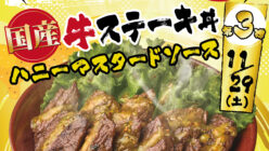 「肉のヤマ牛」11月29日のみ限定、特別価格で「国産牛ステーキ丼」