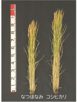 なつほなみ 新潟135号。「東北192号」と「越南221号」を交配した極早生の主食うるち。高温耐性は「新之助」並みの「強」、耐倒伏性は「やや強」、「こしいぶき」より優れた玄米品質で、食味は「こしいぶき」並みに優れている。決して多収ではないが、暑さに強いため「一反歩(10a)あたり9俵(540㎏)を安定して獲れる」という。