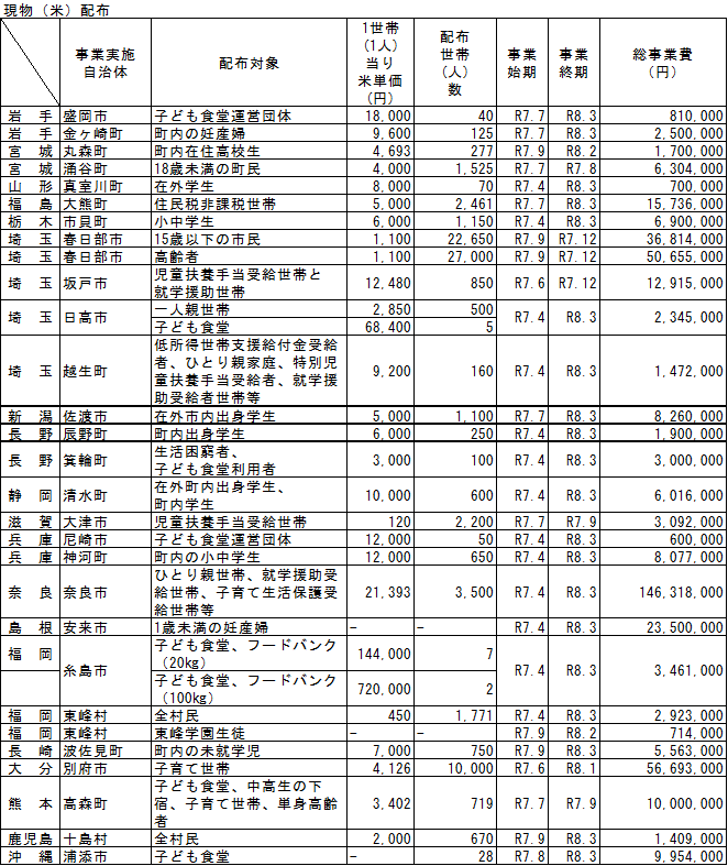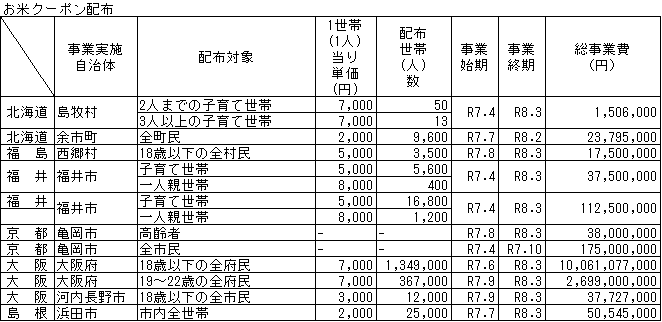 令和7年度(2025)当初予算を財源とした重点支援地方交付金のなかから、本紙で米購入に対する支援をピックアップしてみた。それによると、注目の「おこめ券」の配布による支援は、31自治体19億9,844万7千円(事業費ベース)に及ぶことが分かった。