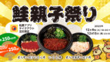 新商品 松屋松屋フーズ 12月9日から松屋「いくら丼」 新商品 X Facebook LINE コピー 2025.12.08 ㈱松屋フーズ(東京都武蔵野市)が運営する牛めしチェーン「松屋」は12月9日午前10時から、「いくら丼」を発売する。毎冬恒例の新商品だが、今年はバリエーションとして、「炙りサーモンいくら丼」「炙りマヨサーモン丼」も。 いくら丼小盛 980円並盛1,480円大盛2,080円 炙りマヨサーモン丼並盛 790円大盛1,290円 炙りサーモンいくら丼並盛1,430円大盛1,930円