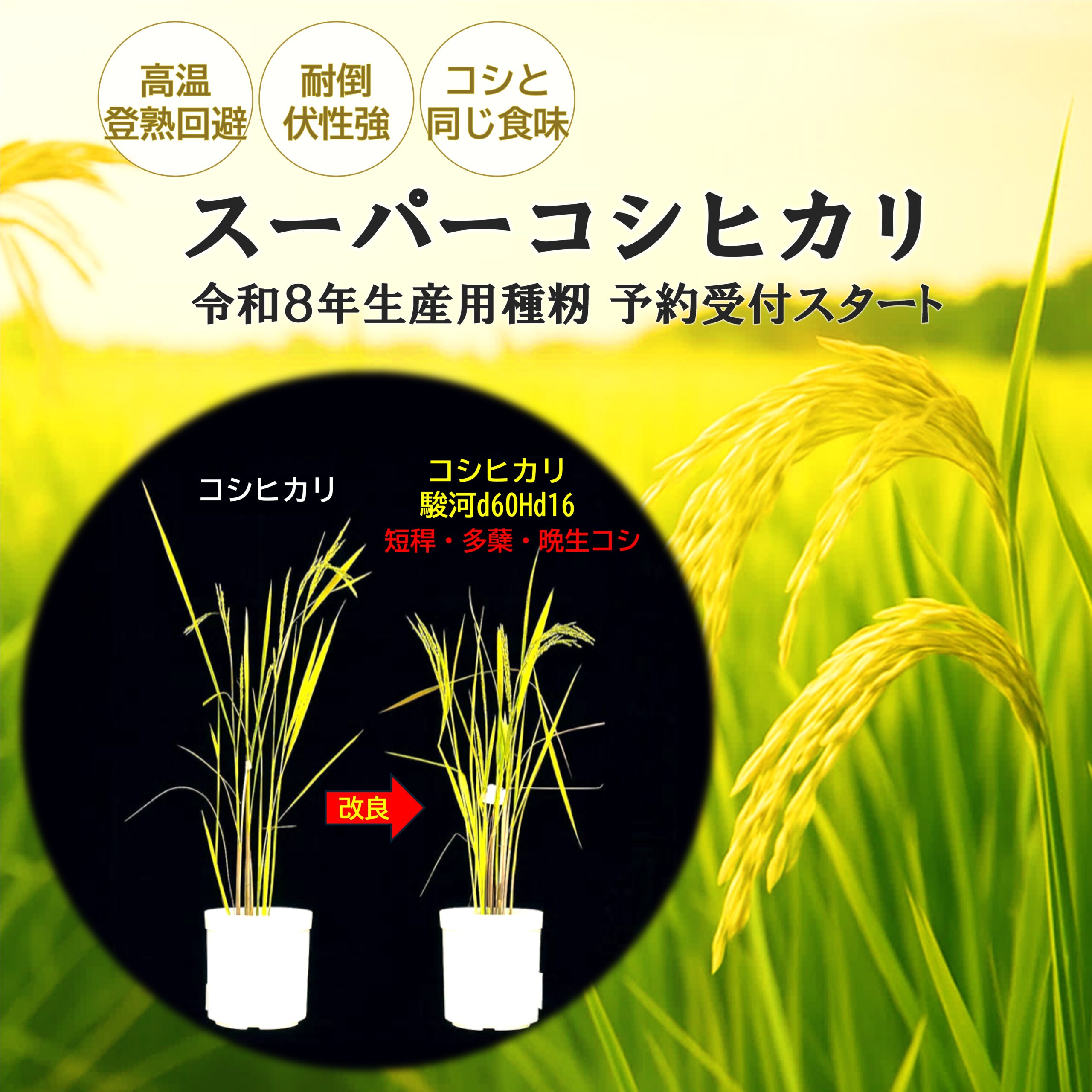 ㈱ニューディメンジョンDNA研究所(東京都渋谷区)は12月10日、コシヒカリを改良した新品種「コシヒカリ駿河d60Hd16」の種籾予約販売を開始したと発表した。