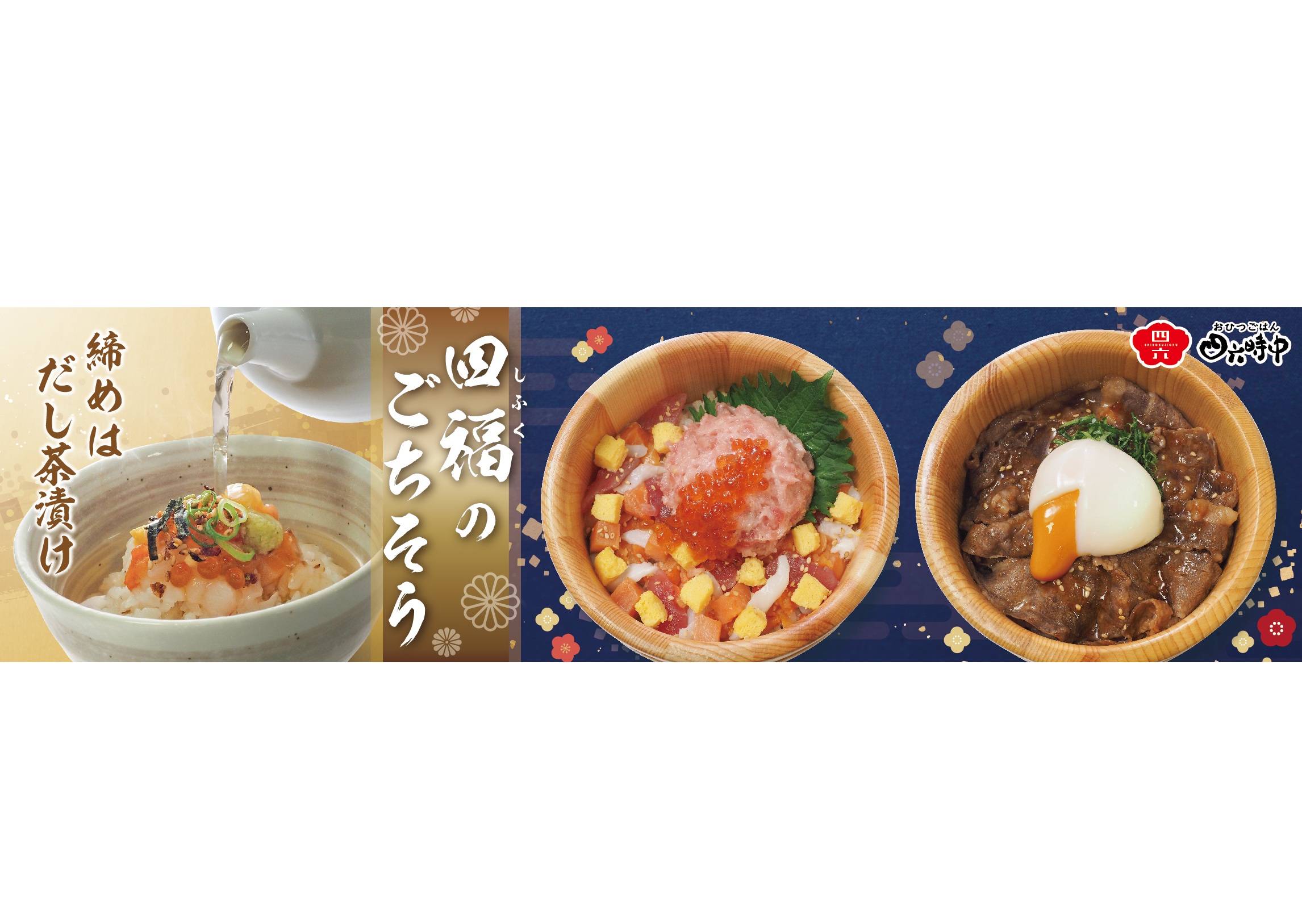 イオングループで飲食事業を展開する㈱イオンイーハート(千葉県千葉市)が運営するレストラン「おひつごはん四六時中」は12月26日から、「四福(しふく)のごちそう」メニューとして以下の2新商品を発売する。来年1月4日までの期間限定販売。価格は税別。