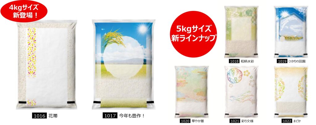 「セレクトパック用ベース袋」は、産地銘柄名などを後印刷することにより顧客のオリジナル米袋が完成するもの。これまで2㎏袋、5㎏袋、10㎏袋が定番で、「4㎏袋」には量目可変タイプで対応してきた。「4㎏だと、5㎏よりも価格的に消費者が手に取りやすくなる。このため4㎏袋の要望が寄せられていた」ことから、定番化に踏み切った。