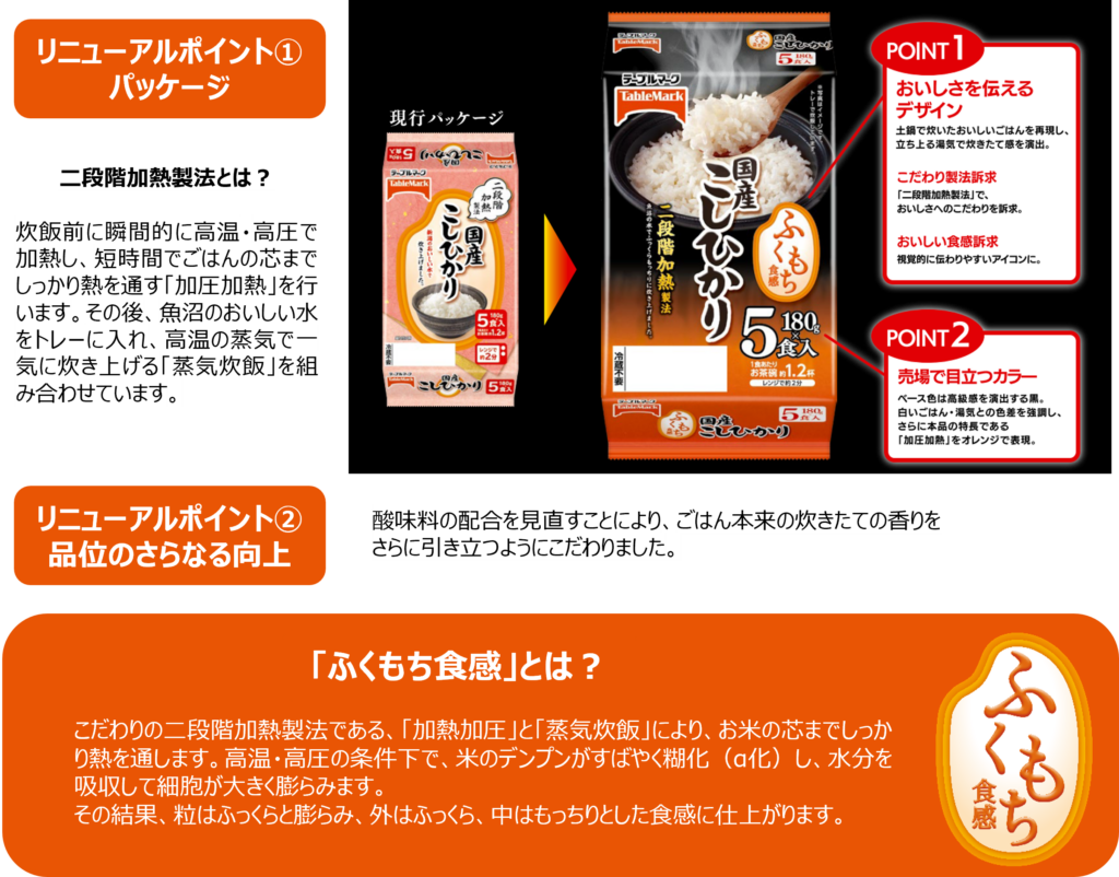 テーブルマーク㈱(東京都中央区)は1月15日、春季新商品のパックごはんを発表した。3月1日から発売する。内訳として、新商品は1品、リニューアルは8品。