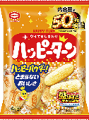 従来品の亀田製菓㈱「ハッピーターン 79g」と比較して、内容量を約50%増。「あまじょっぱいパウダーがクセになるおいしさ」。1月27日発売。供給可能数量は約17万食。
