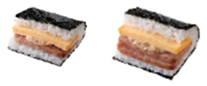 従来品「具! おにぎり ポーク玉子(シーチキンマヨネーズ)」と比較して、ポークランチョンを50%増。「塩味を効かせたポークランチョンと甘さ控えめの玉子焼、シーチキンマヨネーズをサンドしたおにぎり」。2月3日発売。供給可能数量は約196万食。ナチュラルローソンでは販売しない。沖縄では販売せず、「ポーク玉子(シーチキンマヨネーズ)」を発売する。