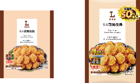 従来品「鶏のから揚げ弁当」と比較して、鶏のから揚げの個数を50%以上増量の8個入りに。「衣がサクサクな鶏のから揚げが入ったお弁当」。店内調理サービス「まちかど厨房」導入店舗(約9,000店)で、2月9日発売。沖縄では販売しない。北海道では仕様・価格が異なる。