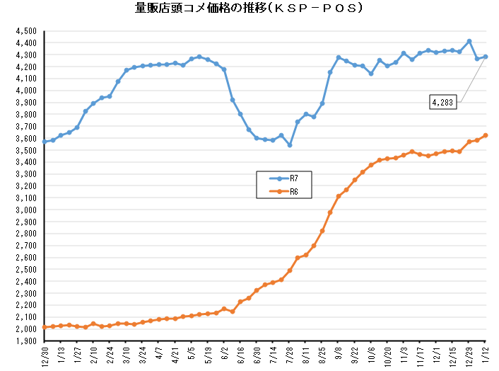 量販店頭米価、KSP-POSのみ反発の5㎏4,283円