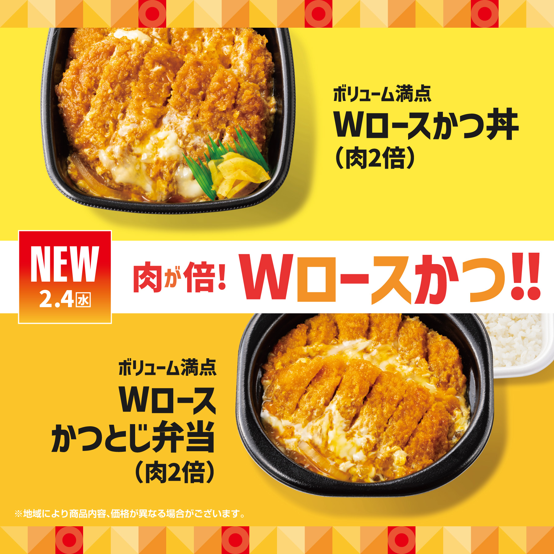 新商品 ほっともっとプレナス ほっともっと、2月4日から新商品「Wロースかつ丼/かつとじ弁当」 新商品 X Facebook LINE コピー 2026.02.03 ㈱プレナス(東京都中央区)が展開する持ち帰り弁当「ほっともっと」は2月4日から、新商品「Wロースかつ丼」(税込960円)と「Wロースかつとじ弁当」(990円)を発売する。 Wロースかつ丼960円 Wロースかつとじ弁当990円