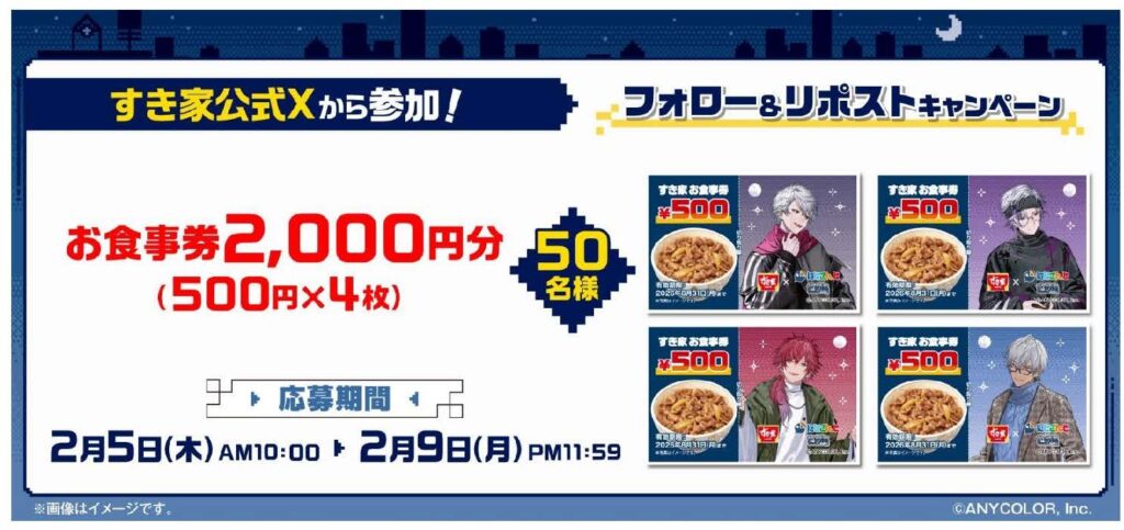 ㈱すき家(東京都港区)が展開する牛丼チェーン店「すき家」は2月5日午前9時から、VTuberグループ「にじさんじ」に所属する4人のVTuber〝せめ4〟とのコラボ「せめ4と一緒に すき家なんじゃない?」キャンペーンを開始する。3月19日午前8時まで。