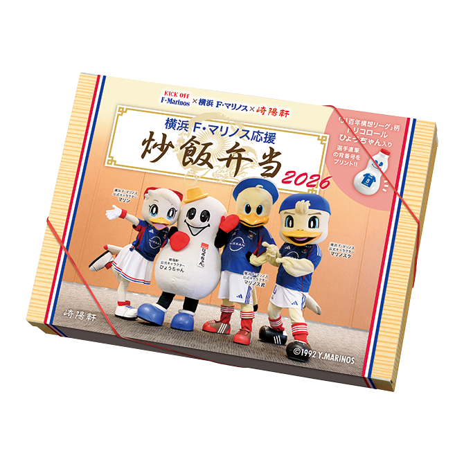 ㈱崎陽軒(神奈川県横浜市)は2月6日、毎年恒例の新商品「横浜F・マリノス応援炒飯弁当2026」を発売する。崎陽軒の「チャーハン」をメインに「人気」のおかずを詰め合わせたもの。税込1,500円。取扱いは日産スタジアム崎陽軒催事店舗。今シーズン横浜F・マリノスのホームゲームの際のみ販売する。