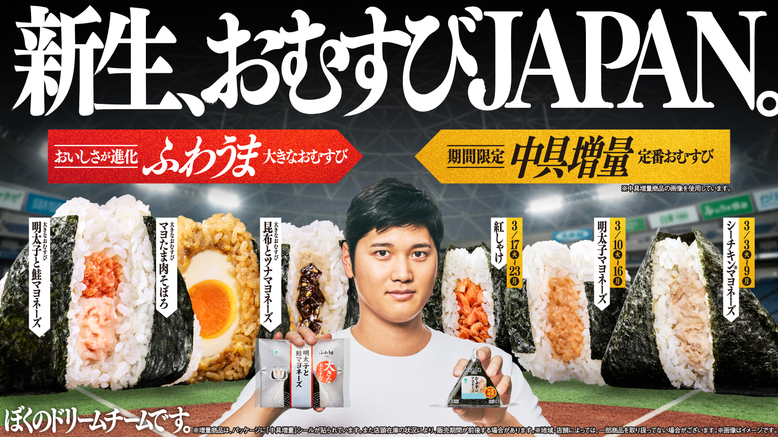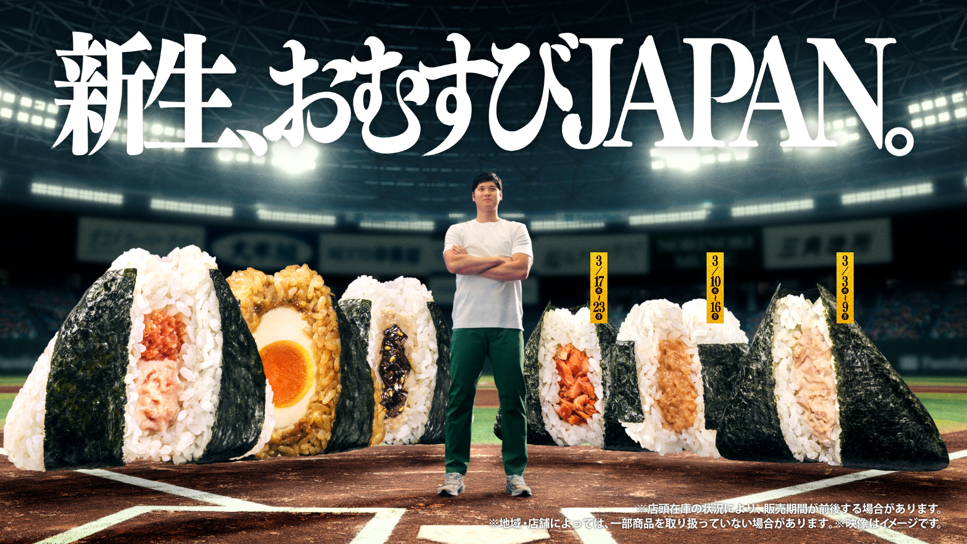 キャンペーンの開始に合わせて3月3日から、おむすびアンバサダー大谷翔平選手が出演する新CM『新生、おむすびJAPAN。』篇の放映が始まる。
