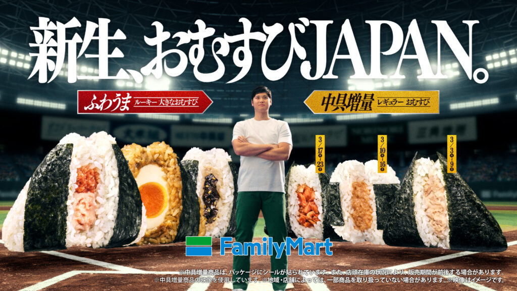 ㈱ファミリーマート(東京都港区)は3月3日から、運営するコンビニチェーン「ファミリーマート」で、「新生、おむすびJAPAN。」キャンペーンを開始する。おむすびアンバサダー大谷翔平選手が出場するWBC(ワールド・ベースボール・クラシック)の開催に合わせ、おむすび計9種類を順次発売するもの。