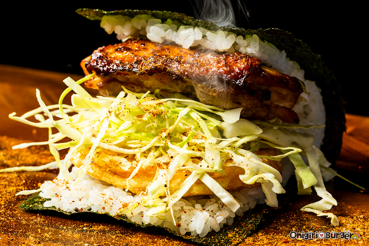 「おにぎりバーガー」は、「バンズの代わりに”お米と海苔”で具材を挟んだ日本のハンバーガー」がコンセプトで、全メニューを「鮓 きずな」(大阪・京橋)のオーナーが開発している。