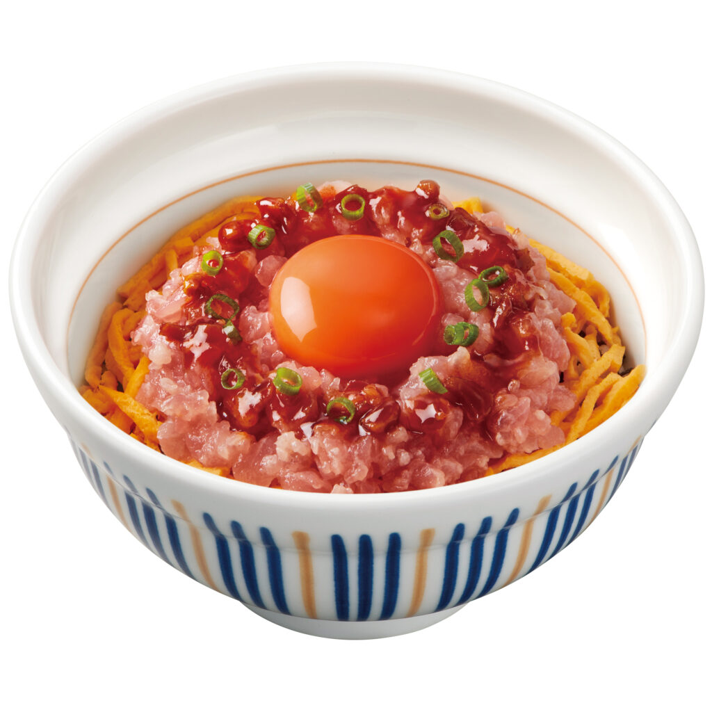 「粗めにたたいたまぐろたたきに、たっぷりの白髪ねぎと、ごま油香るなか卯特製の塩だれを合わせた一品」。「ごま油やレモンを使用した風味豊かな塩だれと、程よい辛みの白髪ねぎが、まぐろの旨みを引き立てます。塩だれと白髪ねぎ、まぐろたたきが織りなすやみつきになる味わいを存分にご堪能いただけます」とアピールしている。バリエーションとして、「まぐろのたたき丼」や「まぐろユッケ丼」も(以下の価格は並盛の税込)。