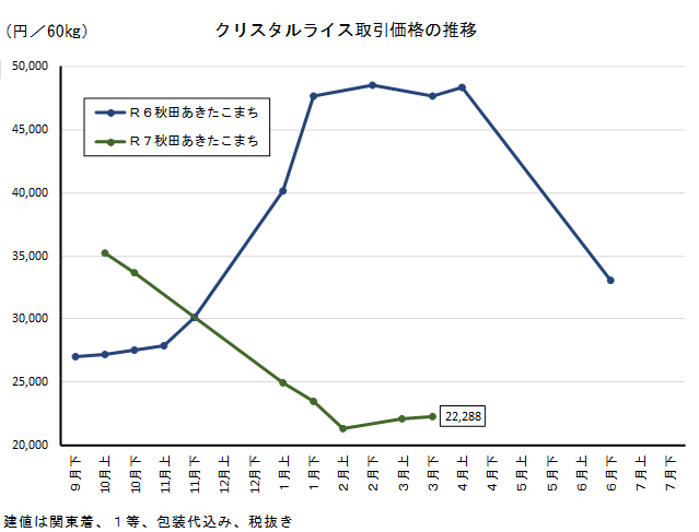 | 秋田あきたこまち | 22,288円 | 3月上期比+165円 |