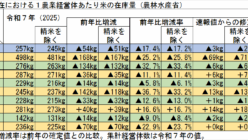 農水省調べ、6月末の戸あたり生産者在庫は▲17.4%の257㎏
