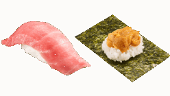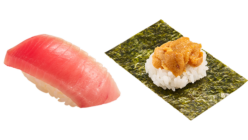 フェア スシロー「大切り本鮪中とろ」160円、「濃厚うに包み」180円