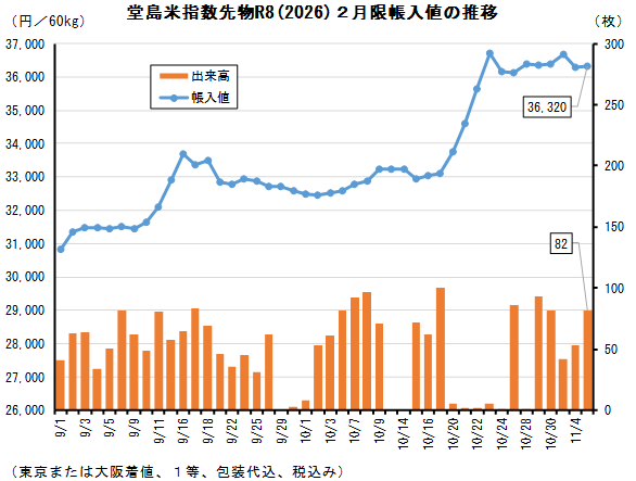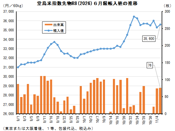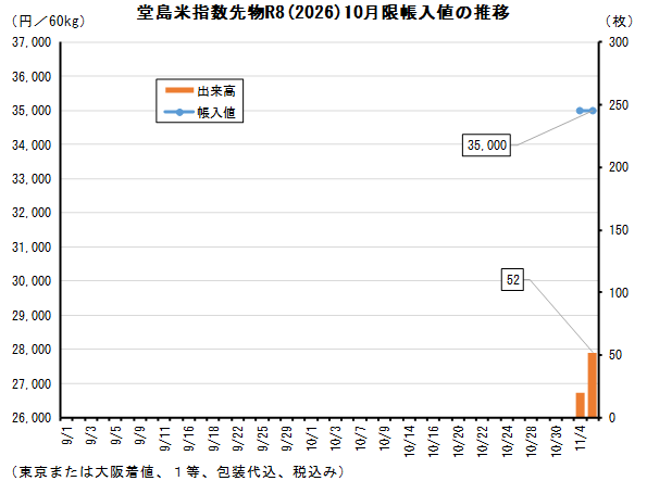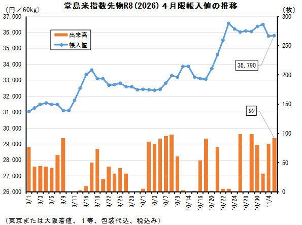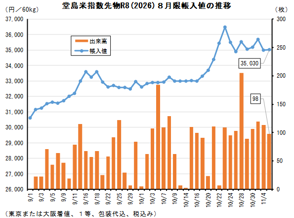 相場 堂島コメ平均4月限が納会、1日出来高58枚