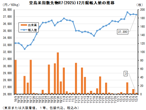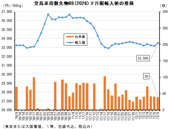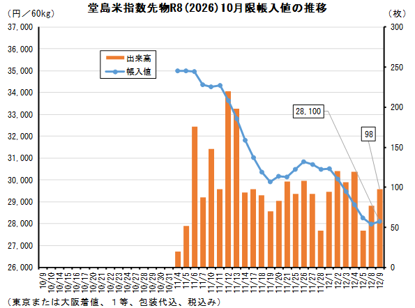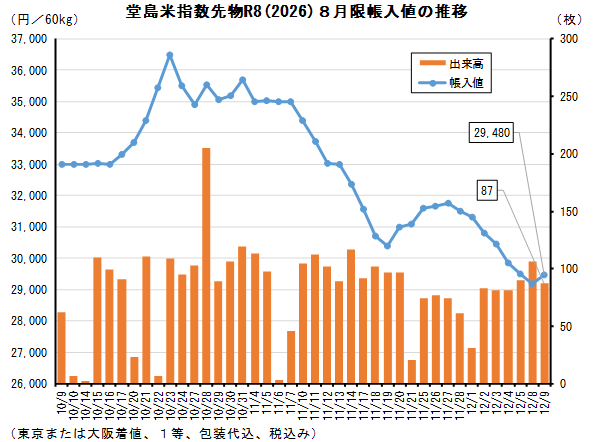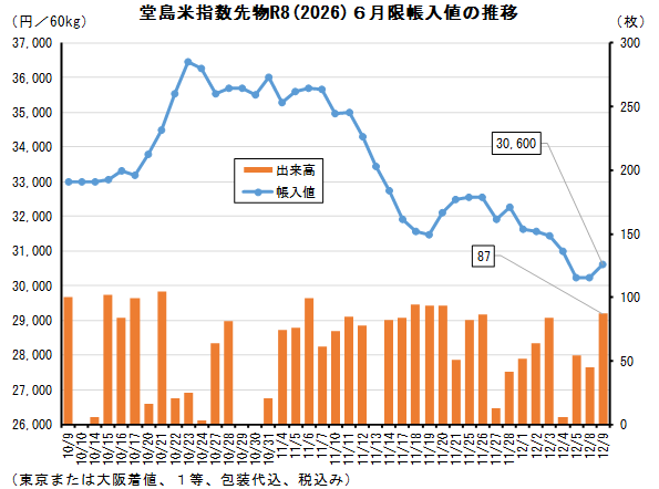 相場 堂島・現物コメ指数、令和6年産12月は24,873円